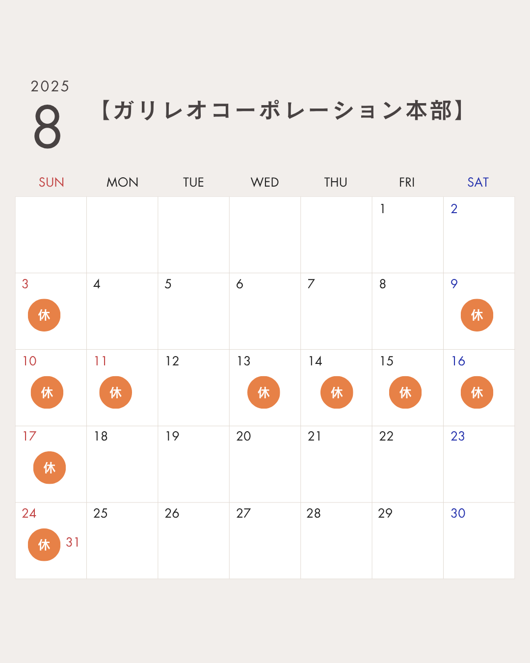ガリレオサービステラス店につきましては、8月13日(水)から17日(日)までお休みをさせていただきます。